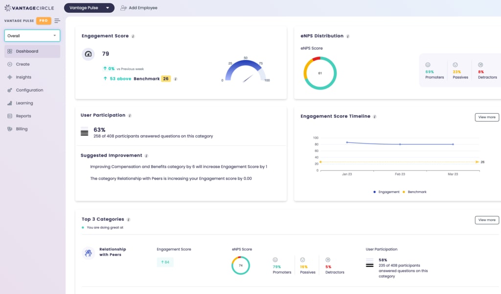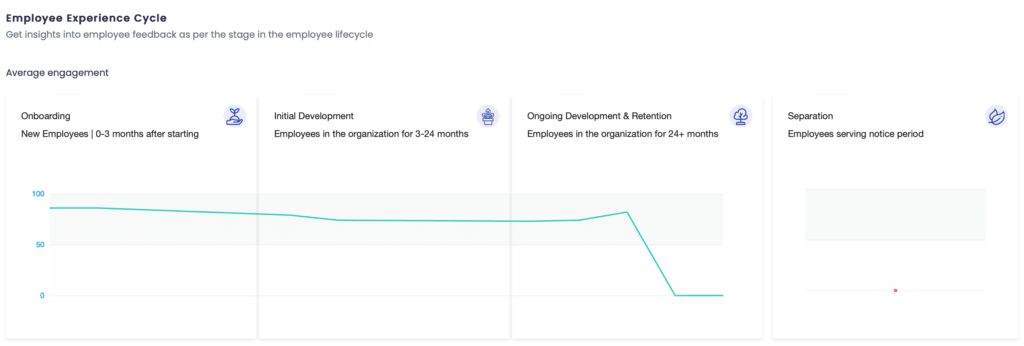 Employee Experience Cycle– With pulse, HR admins can look into and understand your organization’s basic and micro aspects that affect employee experiences and workplace culture. You can track employee engagement at each stage of the lifecycle, thus impacting the next step.