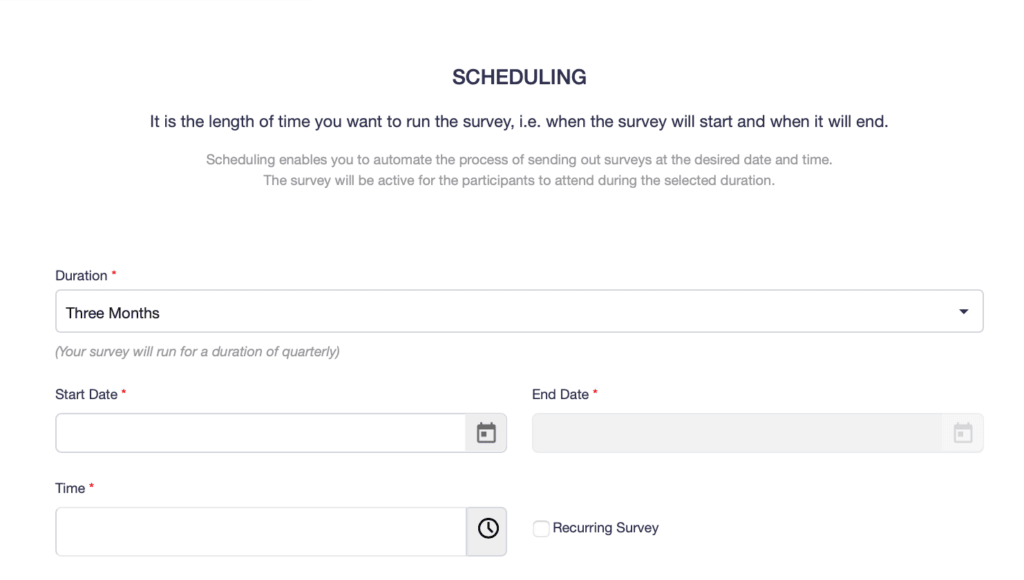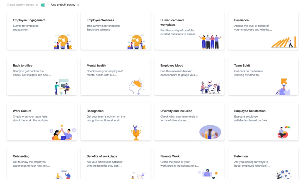 3. Automated Pulse Surveys– The HR Admin can create and choose the type of survey and decide the duration (monthly, quarterly) & the frequency (daily, weekly, bi-weekly).