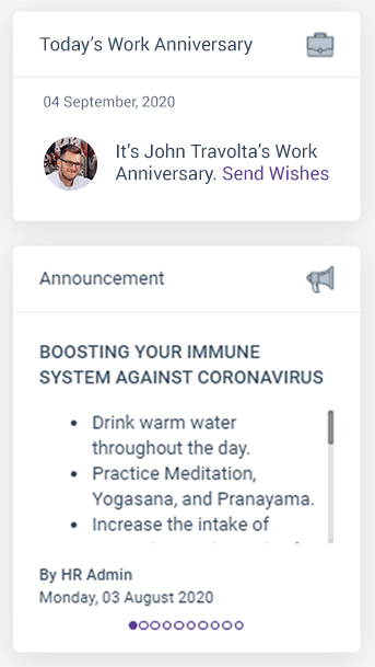 It is never a nice thing to miss out on your colleague’s birthdays and work anniversaries. And remembering dates for a specific occasion can become a hassle in a busy schedule. To help you out with that, we have now added a live interactive notification section specifically for birthdays and anniversaries to keep you updated every day. Now, never miss out on your colleagues or your employees’ special occasions and make the most out of the day to make it memorable.