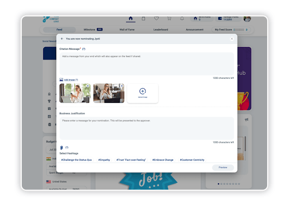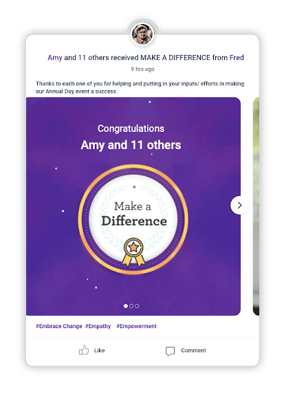 We believe in timely recognition and capturing the moment of joy. So we enabled these two features to make recognitions more specific and provide a visual representation.